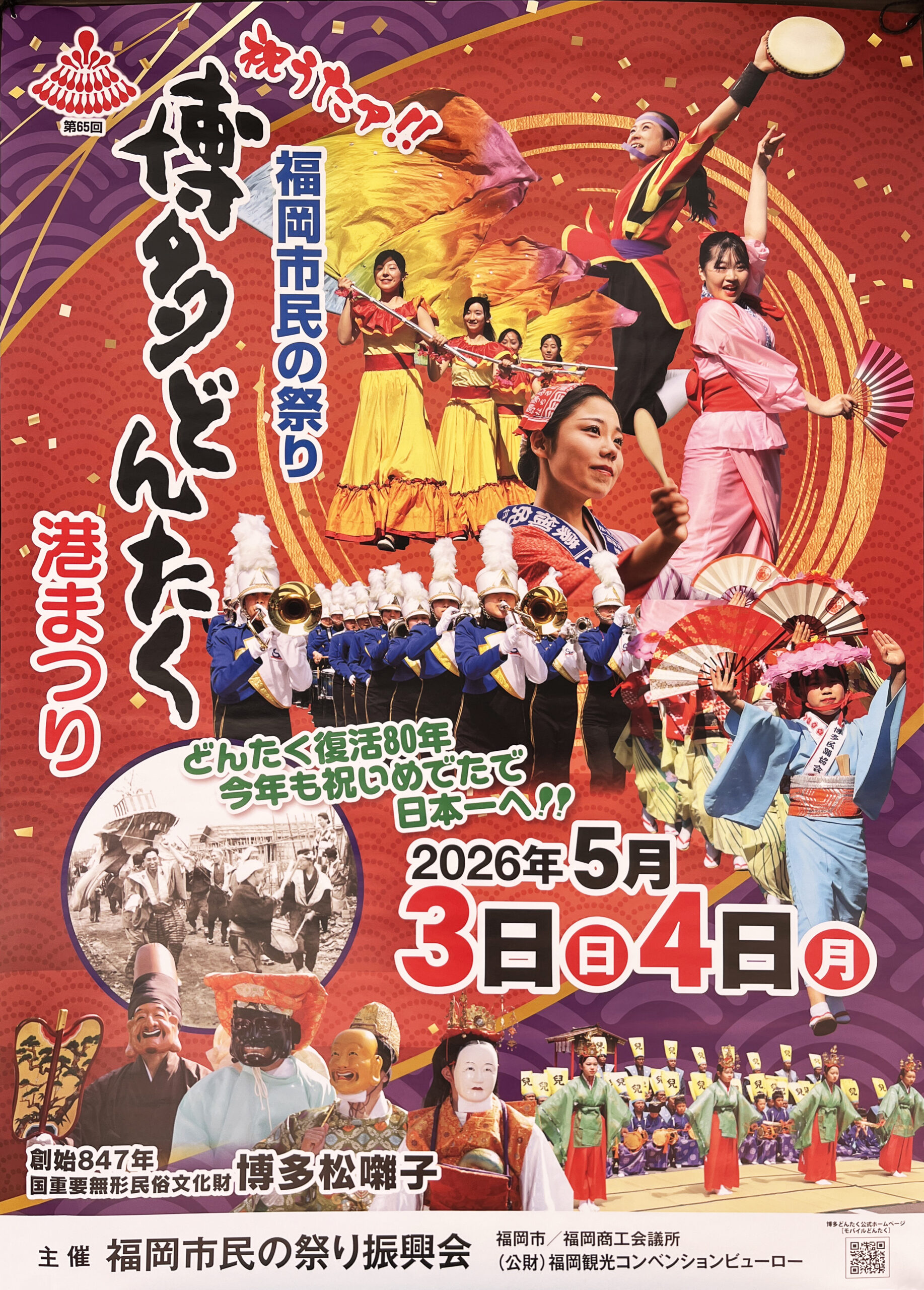 主に演舞台が開催される施設にポスターが貼られており、また、どんたくパンフレットにも表紙に掲載されています✨